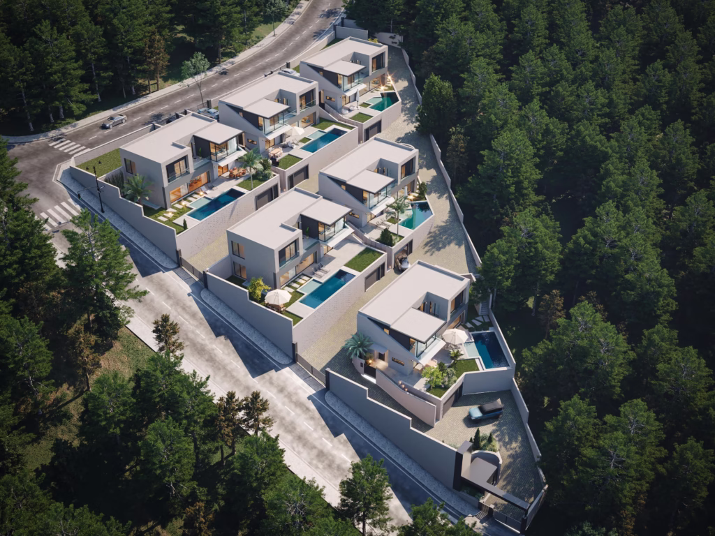 Geniş bahçeleri, ferah yaşam alanları ve modern mimarisiyle konforu doğanın kalbinde sunuyor.